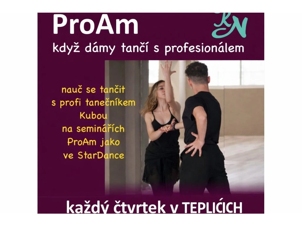 Kurz PRO-AM je taneční seminář, kdy tancujete s profesionálním tanečníkem. Na hodinách tedy netancujete sami, ale máte k dispozici profesionálního tanečníka, aby s Vámi všechny kroky zatančil. Budete se tak rychle zlepšovat a navíc Vám nikdo nebude šlapat na špičky.